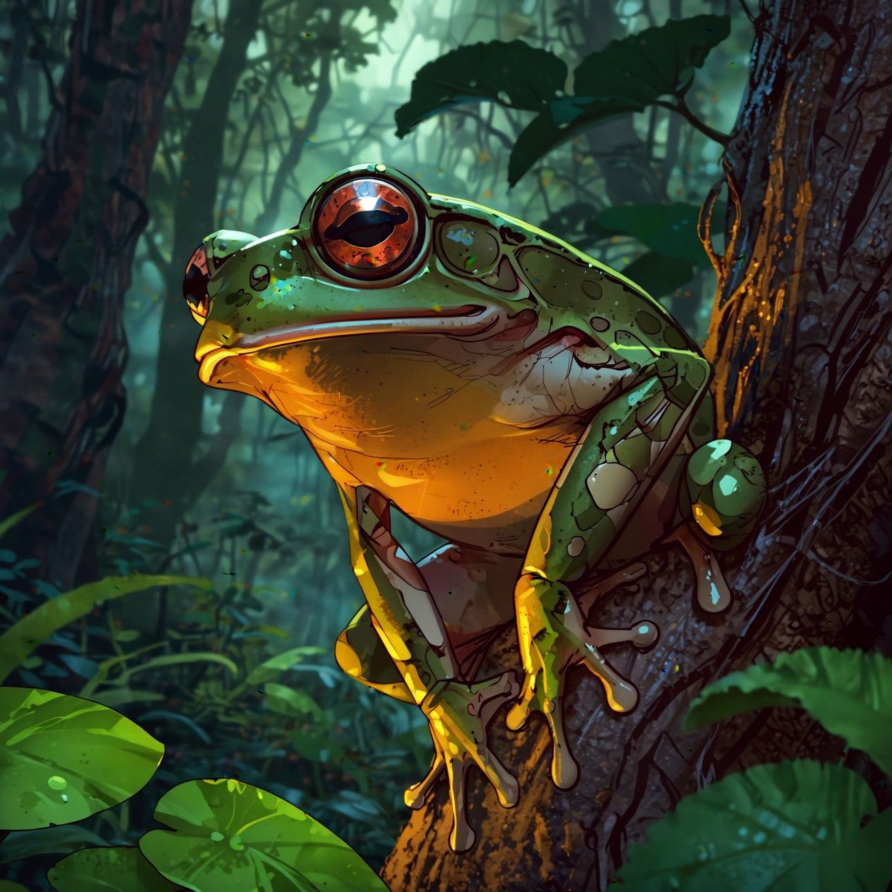 PROMPT: “Create a realistic image of a mute frog in a dangerous forest environment.”