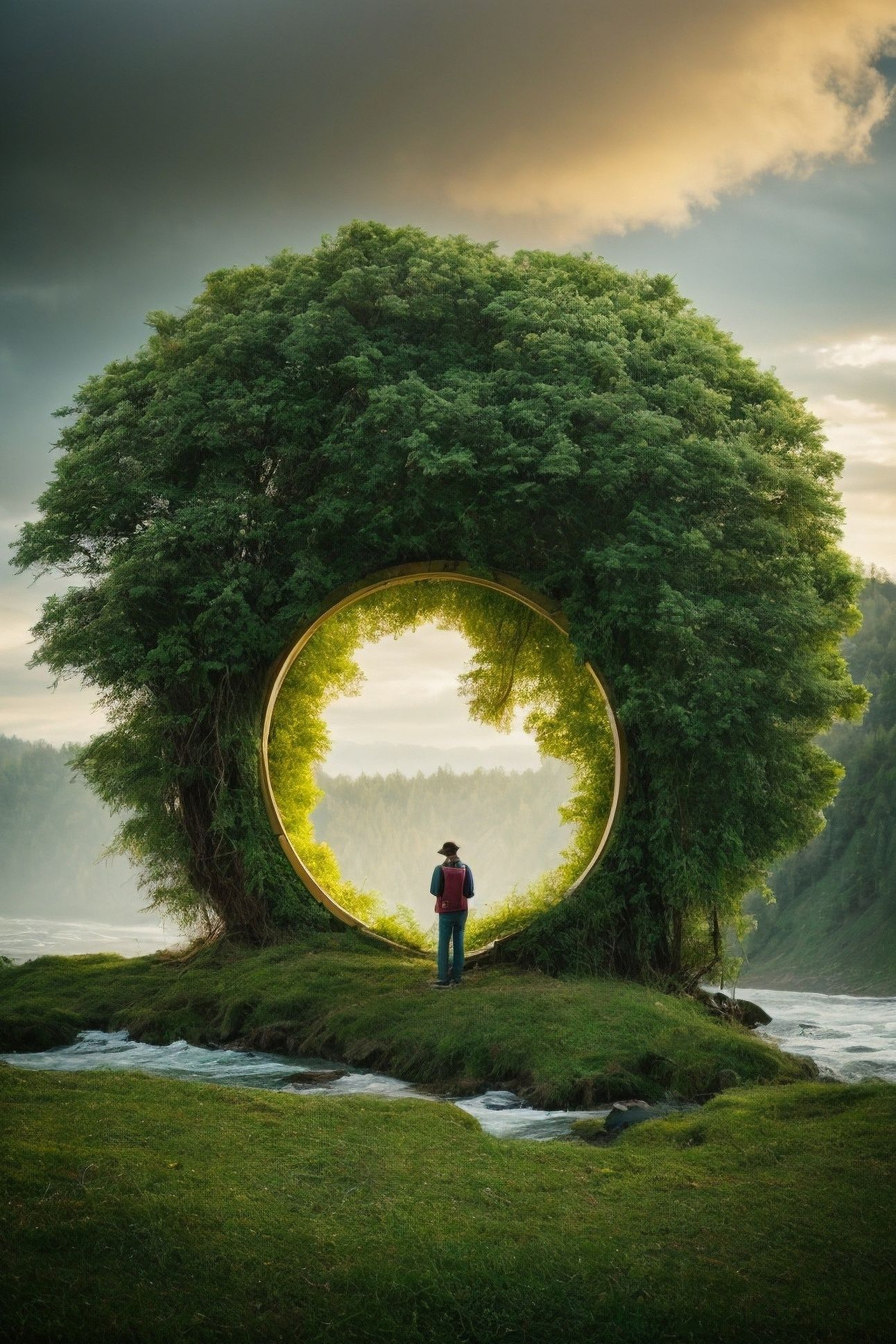 PROMPT: Design a thoughtful piece of art inspired by the power of nature
